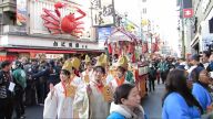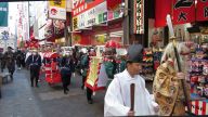 平成8年1月10日(土)、大阪・南の商店街が主催し、「今宮戎神社」 に商売繁盛の祈願と、福を貰いに行く「宝恵駕(ほえかご)行列」だ。 (注) 動画は、汎用な MP4動画(852x480, 30 fps, 4Mbps)です。 |